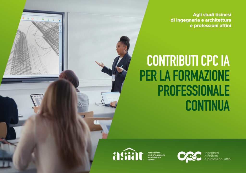 In un momento in cui il perfezionamento e l’aggiornamento professionale sono particolarmente sentiti, la Commissione professionale paritetica cantonale per gli ingegneri, gli architetti e professioni affini (CPC IA) ritiene opportuno e necessario, nei limiti delle sue competenze e disponibilità, favorire e stimolare con degli incentivi l’accesso alla formazione professionale continua. A tale proposito la CPC IA rammenta che i fondi paritetici, oltre ad assicurare il regolare funzionamento della stessa, possono essere utilizzati per scopi concernenti il perfezionamento professionale conformemente all’art. 11.4 del Contratto collettivo di lavoro per gli ingegneri, gli architetti e professioni affini (CCL) per il Cantone Ticino.